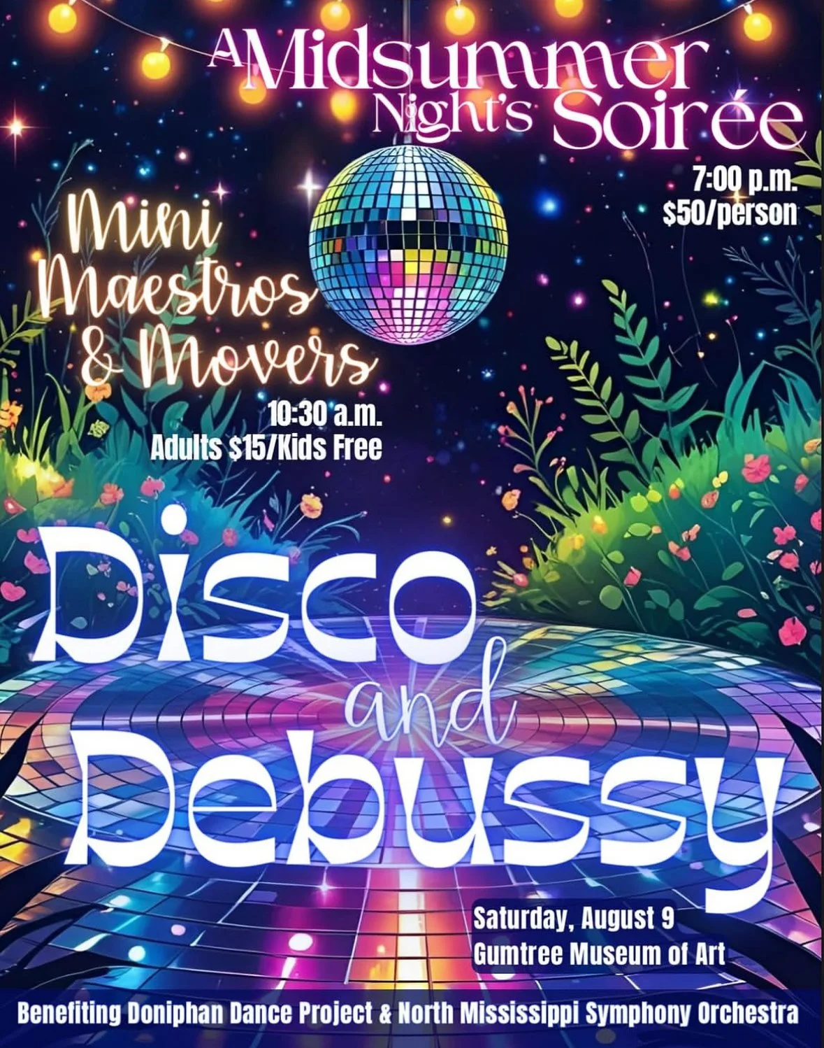 The North MS Symphony Orchestra and Doniphan Dance Project present our 2nd annual fundraising event, “A Midsummer Night’s Soirée” and “Mini Maestros & Movers”.
